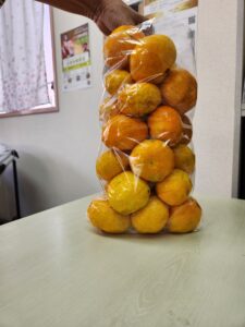 親切なおば様「この籠の中のミカン🍊、つめほーだいで300円ですってよ!!!☺️」